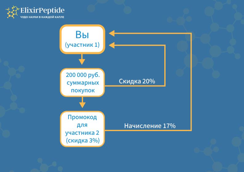 Партнерская программа предусматривает участие только физических лиц. Партнерская программа «ElixirPeptide» позволяет Вам зарабатывать на начислениях до 25%.
